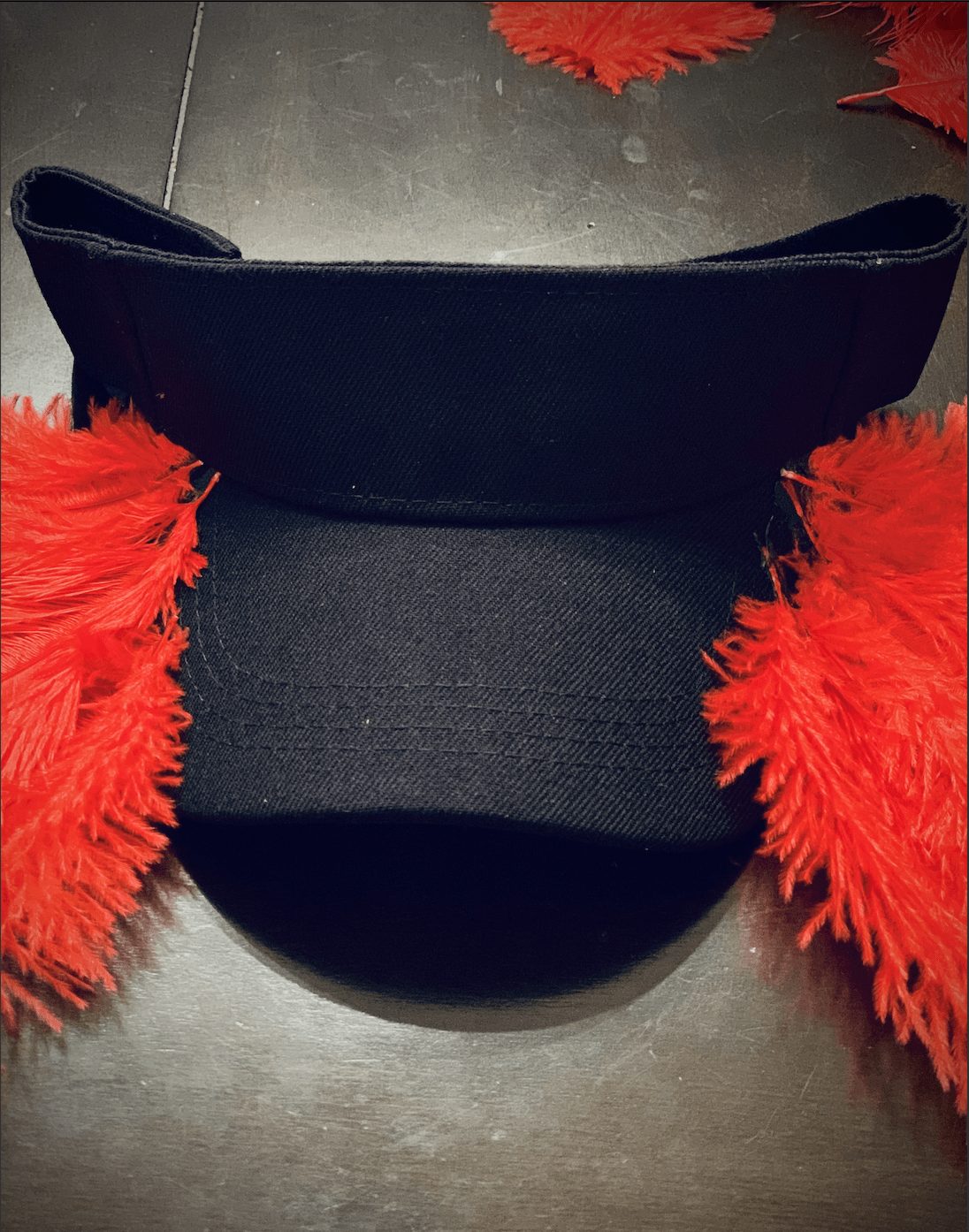 Start applying the Ostrich Feathers by gluing the tips onto the top of your visor cap.