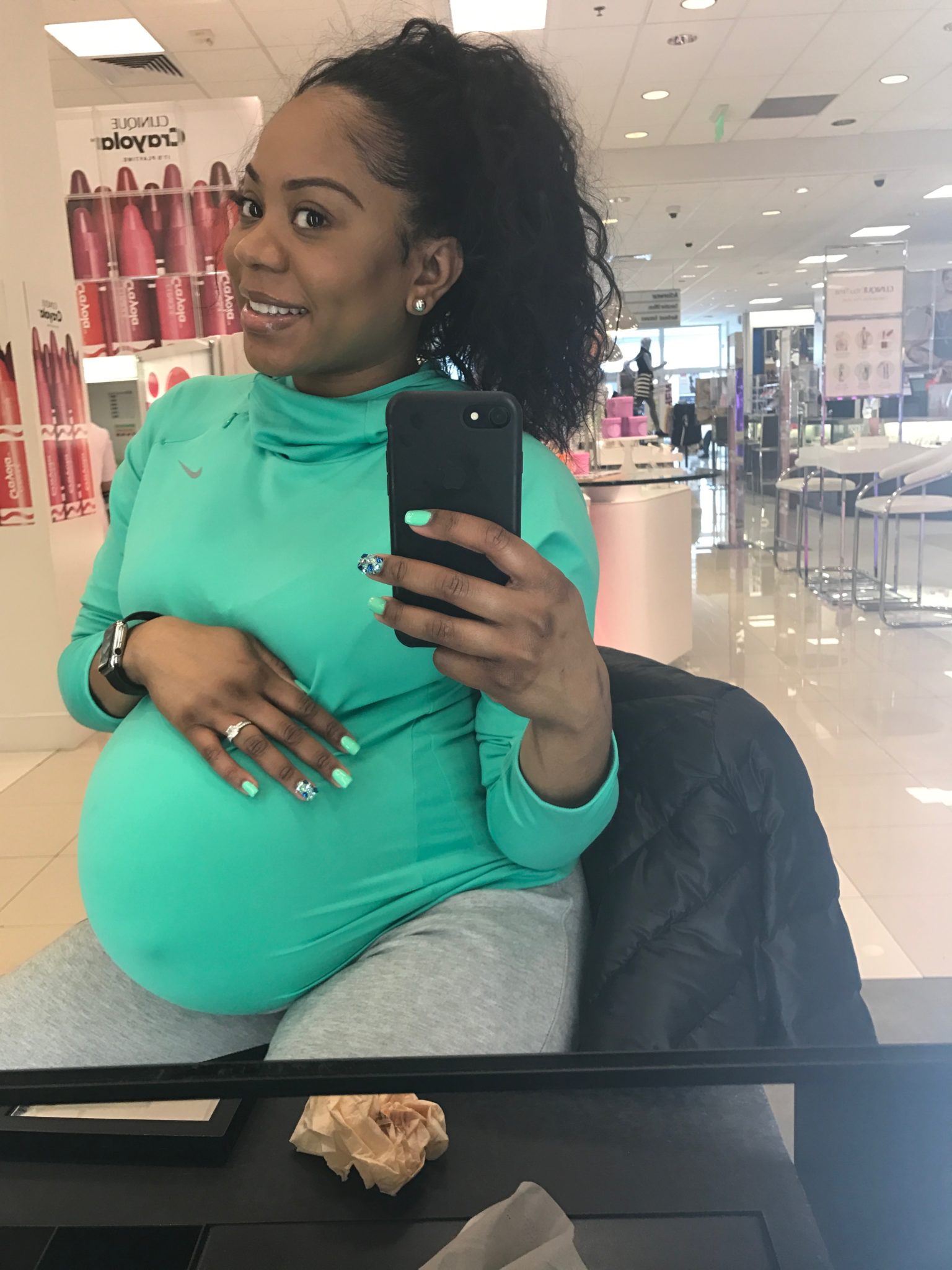 They got me a gown and put the monitor on, baby’s heart beat was strong and labor was in full swing by this time. I couldn’t get comfortable (go figure, lol) I would sit up, then sit back. Then get up. But I was most comfortable just sitting on the toilet. The nurses advise against this, but it’s what felt best. As the contractions got closer and the pain increased i felt like I had to push. Sanya was standing over me as I sat on the toilet and I looked up at her and said “tell them get the doctor, it’s time” When my doctor came in and checked me I was 9 and a half centimeters dilated she said I could push.